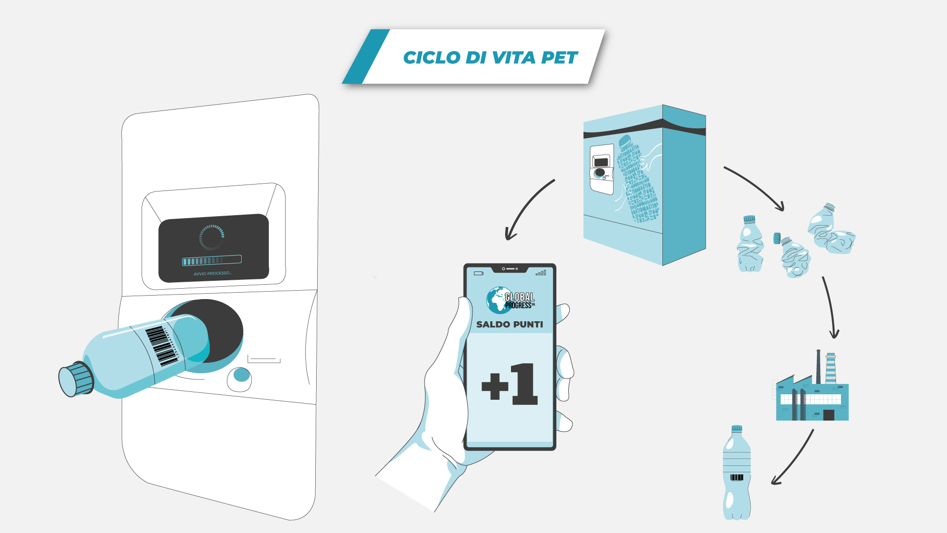 - Un video con animazioni flat, pensato per spiegare nel dettaglio la proposta di Global Progress. Per questo contenuto abbiamo utilizzato immagini stock, che abbiamo rinnovato e ridisegnato per una comunicazione chiara ed efficace, animandole per dare vita a una presentazione dinamica e coinvolgente. Il video segue una narrazione fluida e intuitiva, illustrando il funzionamento dell’eco-compattatore, i benefici per l’ambiente e le sue applicazioni pratiche. Abbiamo curato ogni dettaglio, dalla scelta dei colori all’animazione delle icone, per garantire un messaggio chiaro e accattivante.